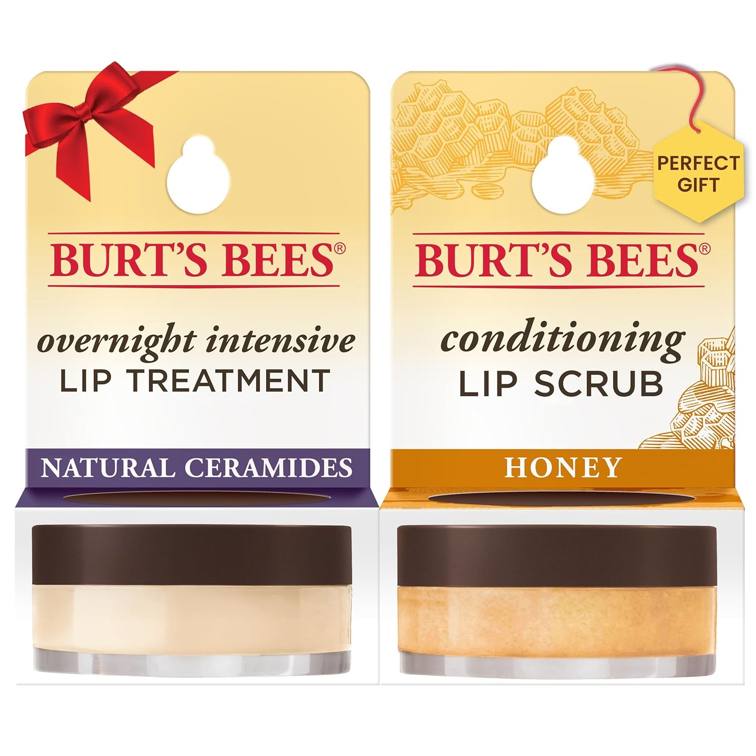 - LIP SCRUB SET: Includes one 0.25 oz. Burt's Bees Conditioning Lip Scrub to exfoliate and condition lips and one 0.25 oz. Burt’s Bees Overnight Intensive Lip Treatment to hydrate lips for up to 8 hours